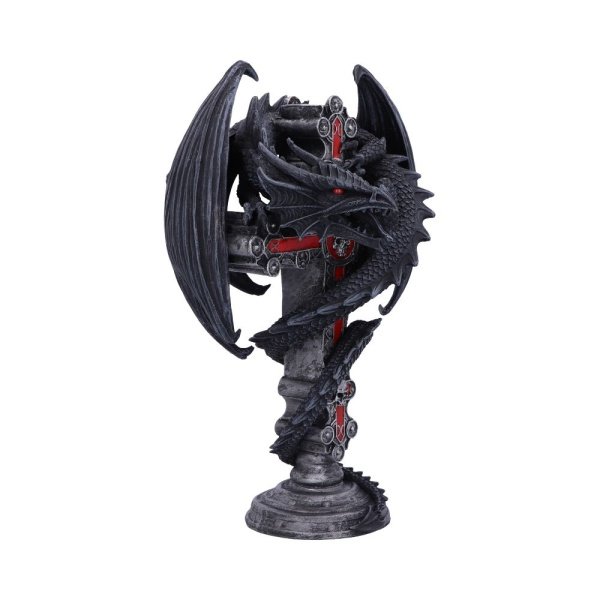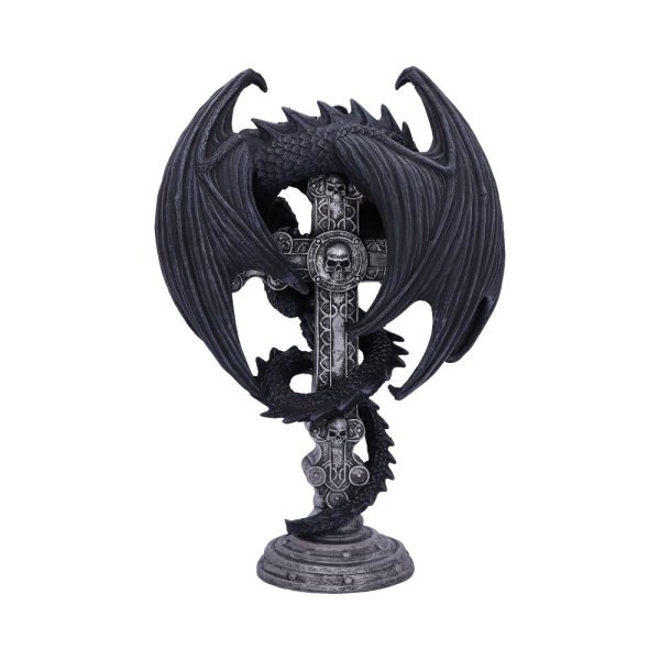 Created by Nemesis Now, this Gothic Dragon candle holder comes from the Gothic imagination of globally famous alternative Fantasy artist Anne Stokes. With striking red details and small sculpted skulls, this black Celtic cross makes the perfect resting place for our fiery companion. Coiling around the body of the cross, this fierce Dragon has its wings raised, an alert to any intruders or would-be thieves. At the top of the cross, there is a small space to place a candle. Cast in the finest resin before being carefully hand-painted, this piece is a fantastic way to light your way through Gothic fantasies.