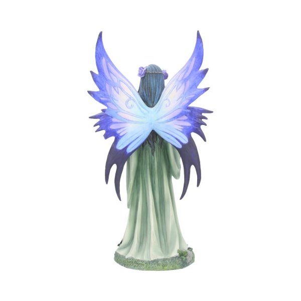 From the enchanted imagination of world-famous Gothic and Fantasy artist Anne Stokes, this fantastic Fairy figurine is from Fantasy brand Nemesis Now’s giftware collection. Barefoot on a forest floor as she slowly walks forwards, this Fairy’s long green dress hangs down to the floor, trimmed with gold. In her left hand she holds a purple rose, matching her delicate purple wings that are outstretched behind her, and in her right she has a crystal ball. Blue butterflies fly about her, one settling on the crystal, and a delicate gold chain sits above her hair, holding a pentagram on her forehead. More purple roses sit in her long blue hair as she holds your gaze, calm and unafraid. Cast in top-quality resin before being expertly hand-painted, this enchanting figurine radiates an aura of calm and magic.