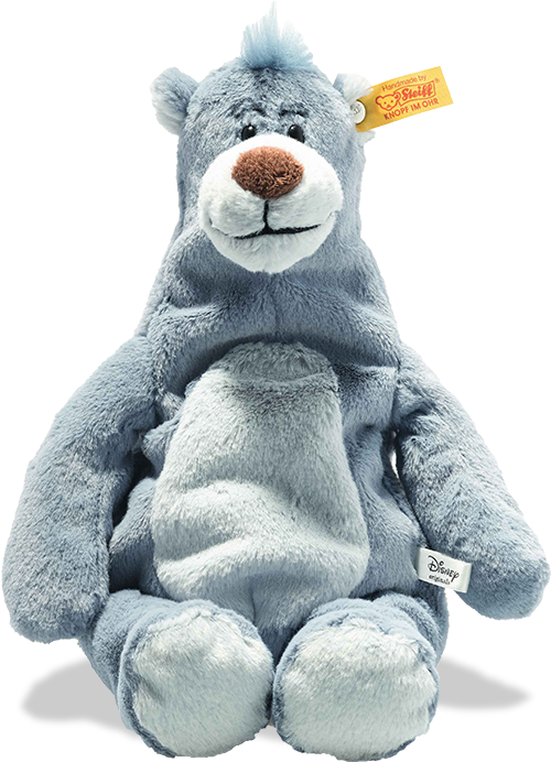 He’s the most easygoing bear you could ever imagine. Soft Cuddly Friends Disney Originals Baloo will bring a calming influence to family life. Get up quickly? – Not with Baloo. A little dispute? – Baloo has the solution. Real worries? – Baloo offers a friendly ear. Measuring 31 cm tall, Baloo is a cuddly soft plush bear with a wonderfully endearing character. His kind eyes observe us and a gentle smile graces his striking snout. His little, two-tone bear ears are just waiting to be fondled by little hands. His pale-coloured belly and paws are just some of his unmistakable markings. The tuft of blue hair on his head adds to his unique look. Bean bags in his arms, legs and bottom make playtime even more fun. See how cosy and calm life can be! Have a great time with Baloo! What makes me special?