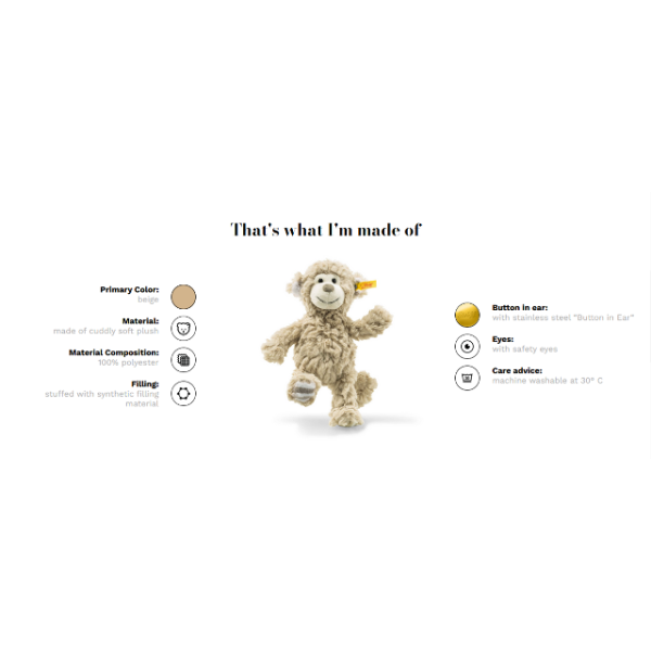 Leandro llama comes from a species that is famous for its superbly soft coat. That is why this llama, standing at 19 cm, is made from extra soft and cuddly cream coloured plush fabric. His face, inner ears and feet feature a beige contrast colour. His cute mouth and nose have been lovingly embroidered in light brown. Leandro llama is the perfect gift for any occasion.