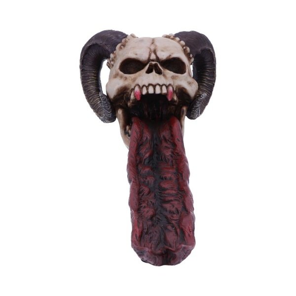 This painstakingly designed Bite Your Tongue Incense Burner, has a horned skull, mouth screaming with a veiny blood red tongue and fangs, which forms the incense holder. Cast in the finest resin before being expertly hand-painted, this incense burner will make the perfect gift to any horror lover.,Bite Your Tongue Incense Burner.,Cast in the finest resin.,Expertly hand-painted.,Perfect for any horror lover.,