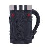Open at the front, revealing the sapphire crystals within, a grey geode is protected by a Blue Dragon. Clambering over the top possessively, it raises its gold-tipped wings in a threat display to warn off intruders. Cast in high-quality resin before being painstakingly hand-painted, the crystal lights up with a colour-changing LED, adding an extra touch of menace and magic!,Frostwing, the frozen blue Dragon, grasps his rock. Protecting the inner crystal.,The crystal in the centre lights up and glows.,Cast in the finest resin and painstakingly hand-painted.,Uses 2 x L1154 or LR44 Batteries to power the light.,