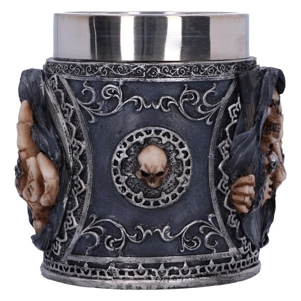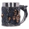 From the twisted mind of Gothic Fantasy master James Ryman, this wallet was created by alternative brand Nemesis Now. In front of a glowing red crypt, packed with skulls, the grim reaper stands, black robe covered with a spindly metallic exoskeleton. Their right hand holds a cruel Gothic scythe and their left hand points directly at you, letting you know you can’t escape. The crypt portal is framed with stone skulls, the eyes glowing red. With the same design on the back, this spacious and stylish wallet is a good way to show the world that you don’t fear the reaper while keeping your cash safe.,From Gothic and alternative artist James Ryman.,Stylish and practical.,Multiple slots for cards.,Zip compartment inside.,