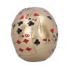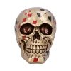 The Dead Man’s Hand has been dealt a new card! The Dead Man’s Hand Skull stares straight ahead, a devilish grin still haunting its mouth. Covering the skull is a plethora of golden playing cards, all facing outwards, showing different suits and numbers. Cast in the finest resin before being lovingly hand-painted, this Skull is stylish yet practical and is the best place to store your winnings.,Beautifully crafted realistic human skull.,Decorated with golden Playing Cards.,Cast in the finest resin.,Painstakingly hand-painted.,