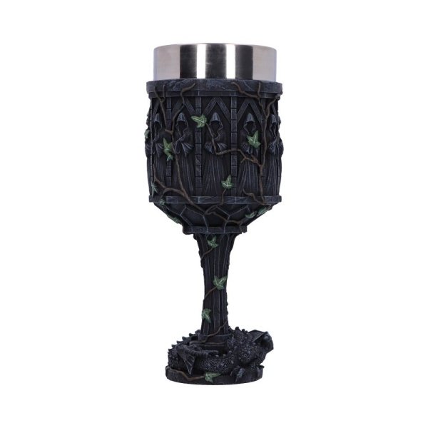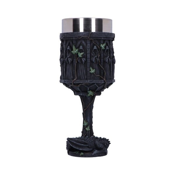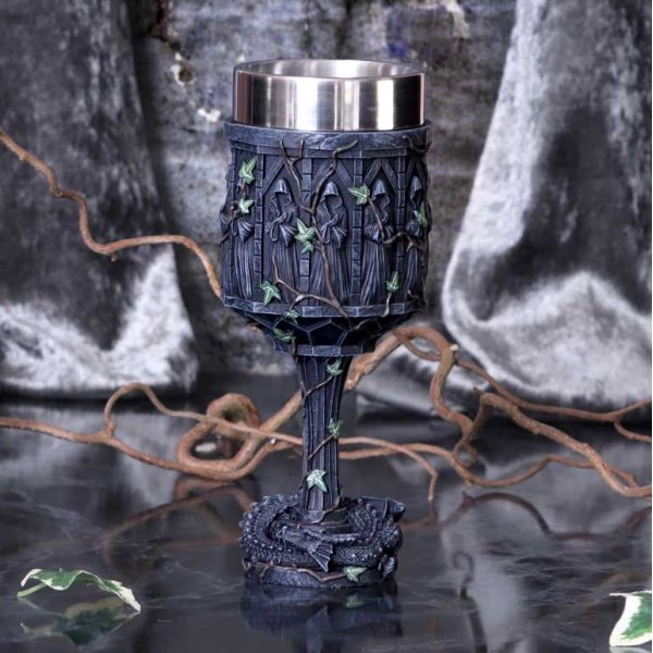Curled around the bottom of the Goblet is a sleeping dragon, peacefully resting until disturbed. Hooded faceless figures also surround the Goblet, waiting, watching, guarding, whilst branches of green ivy snake their way up to the top of the Goblet. Cast in the finest resin before being expertly hand-painted, this Goblet is perfect for any gothic lover. ,Gothic Goblet.,Size 20cm.,Cast in the finest resin.,Expertly hand-painted.,