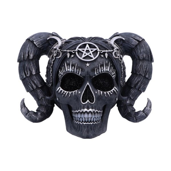 Introducing our captivating Drop Dead Gorgeous – Solve and Coagula skull, a unique and enchanting fusion of mysticism, charm and darkness. Adorned charcoal grey features and silver detailing. Creating an atmosphere of curiosity and a connection to the sabbatic goat, Baphomet, this piece serves as a unique and eye-catching skull in any space. Cast in the finest resin before being expertly hand-painted, this Drop Dead Gorgeous – Solve and Coagula skull will ignite your imagination and make the ideal statement where ever you choose to display it.,Baphomet Doll Skull,Glitter eyes,Cast in the finest resin,Expertly hand-painted,