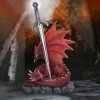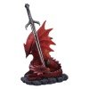 Prepare to be enchanted by the presence of this majestic fiery red dragon figurine. Nestled amidst rocky terrain, this dragon lays protecting the sword that stands upright in the centre. Cast in resin before being hand-painted, this Forged in Flames figurine will add a touch of fantasy to any space.,Red dragon and sword figurine,Ideal for fantasy collectors,Cast in the finest resin,Expertly hand-painted,
