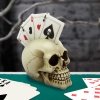 Unleash the rebellious spirit of the Four of a Kind Skull, a striking creation from Nemesis Now’s Value Collection. This bone-colored skull takes an unexpected twist with a distinctive mohawk formed by four aces, each card poking out defiantly from the top-center. Crafted from the finest resin, this unique skull stands at 18.1cm, showcasing meticulous hand-painted details that bring the macabre to life. Whether your customers are avid poker players or lovers of the unusual, the Four of a Kind Skull is a standout addition to our extensive skull-themed giftware. Created with precision and artistic flair, it adds a touch of edgy elegance to any collection. Embrace the unconventional with this extraordinary piece that captures the essence of rebellion and card-playing intrigue.,Skull Head with Playing Cards,Cast in the finest resin,Expertly hand-painted,Size 18*10.5*19cm,
