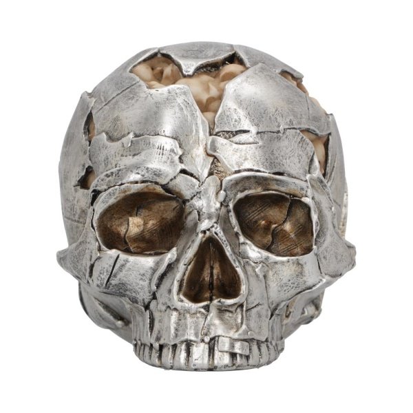 Introducing to you this large Fracture Skull. Formed out of shreds of metal, with smaller craniums appearing in the cracks which have formed on the crown of the skull, creating a brain effect. This unique piece has been cast in the finest resin before being expertly hand-painted and is the perfect addition to any alternative home or gothic collection. ,Alternative skull ornament.,Cast in the finest resin.,Expertly hand-painted.,Size 16cm.,
