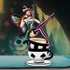 Perched elegantly on the side of an over-filled and oversized teacup, this Hatter sips from her own cup, trying to hold her balance. Designed by Nemesis Now, it shows the Fairy wearing a lace up corset alongside a teal skirt and pink stripy stockings, complimenting her ornate wings. Her hair is red in colour and waves past her shoulders beneath a stylish top hat. Cast in the finest resin before being hand-painted, this figure is perfect for anyone whose mind wanders to other worlds. ,Fantasy Fairy Figurine,Perfect for any lover of the eccentric,Cast in the finest resin,Expertly hand-painted,