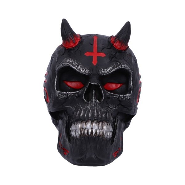 Exclusively designed by internationally renowned Gothic and Fantasy artist James Ryman is this Infernal Skull. With a chilling grin, this skull’s eyes and horns burn red along with a cross on the forehead. Cheekbones are prominent and nostrils flared, this skull resembles the devil inside. Cast in the finest resin before being expertly hand-painted, this Infernal Skull will make the perfect addition to any gothic or horror themed space.