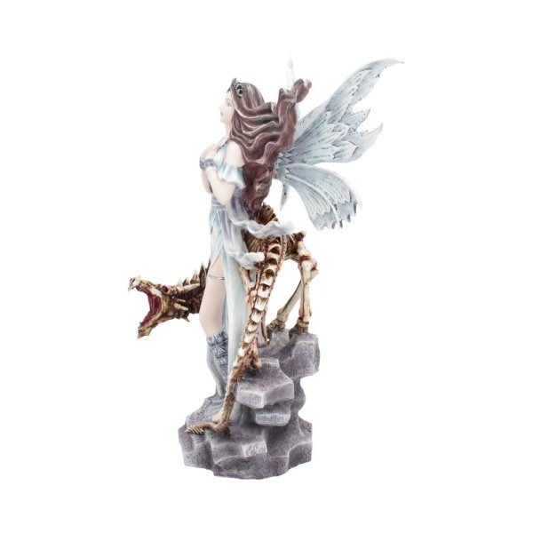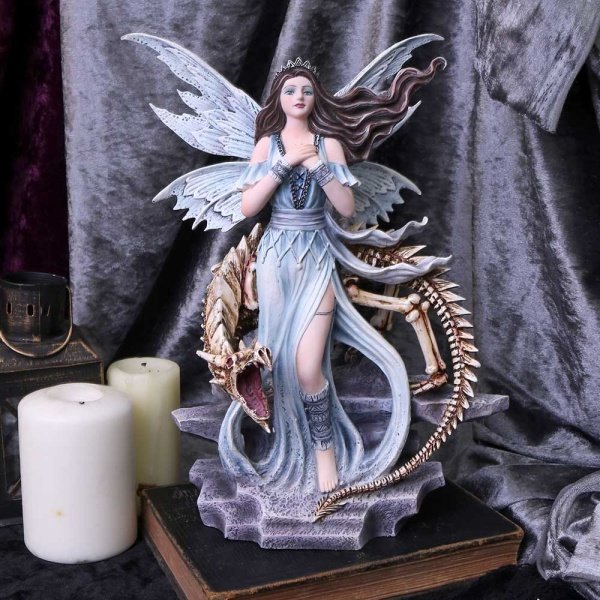 Expertly hand-painted, this draconic statuette comes from Fantasy masters Nemesis Now. Standing on a rocky outcrop, this young Fairy wears an icy blue dress, flowing down to the floor and slit to the thigh. She looks into the distance as her dark chestnut hair flows in the breeze. Large frosty wings spring out from her back, spread wide, as a fierce Dragon stands by her side, warding off any ill-wishers. On closer inspection this mythical creature is not what he seems, his body made up of fleshless bones. Cast in the finest resin, this enchanting figurine radiates an aura of power and control that any can share in.,Dragon companion,Cast in the finest resin,Painstakingly hand-painted.,Size 27.5cm,