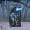 From the untamed imagination of world-famous wildlife and Fantasy artist Lisa Parker, this embossed purse was created by alternative brand Nemesis Now. Beneath a clear starlit sky, an adult wolf stands on an ancient, gnarled tree root, looking down at their pup. The pup sits and looks up at them, as if seeking guidance, reassurance and protection. Behind them, the aurora borealis tinges the sky green, the silhouettes of fir trees reaching up. Beautiful embossed detailing enhances the magic and creates a striking 3D effect.