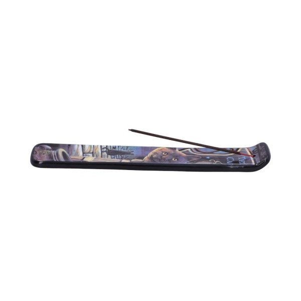 From the magical artwork of Lisa Parker, comes this Rusty Cauldron Incense Burner. Featuring her iconic Rusty Cauldron artwork of a mystic kitty who can be seen perched atop of a barrel outside of the rusty cauldron. Whilst behind him on the cobbled road, another feline can be seen gazing ahead, taking in it’s surroundings of the magical highstreet they find themselves on. Designed with a small hole at the top, suitable for holding your favourite incense sticks, this Rusty Cauldron Incense Burner is the perfect addition to any fantasy collection.