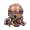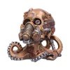 Introducing to you this Octo Respiration Skull Figurine. Starting straight ahead, this skull is formed from layers of riveted metal, covered in pipes, gauges, gears, screws, and an air purification mask. Whilst below the cranium, a set of mechanically enhanced tentacles are attached. Cast in high-quality resin before being expertly hand-painted, this piece is perfect for any alternative home or steampunk collection. ,Steampunk skull.,Cast in the finest resin.,Expertly hand-painted.,Size 18cm.,