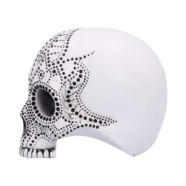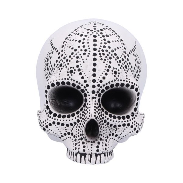 This Pointilist white skull is decorated with various sized black spots creating a pattern over the face of the skull. Its hollow black eyes and nose will send shivers down your spine. Cast in the finest resin before being expertly hand-painted, this Pointlisit Skull is perfect for any gothic space.,Skull Figurine,Cast in the finest resin,Expertly hand-painted,Size 9cm,