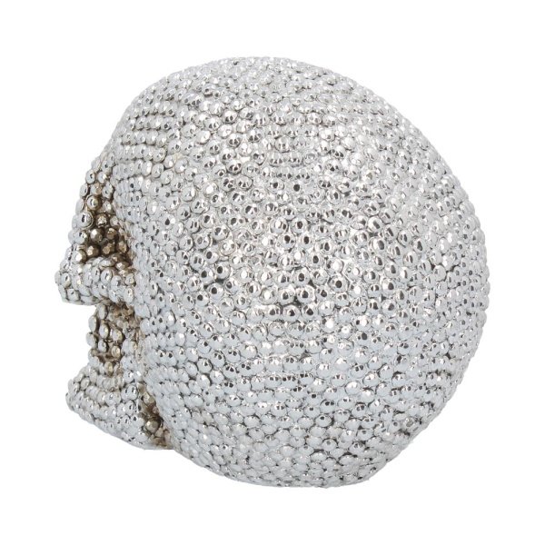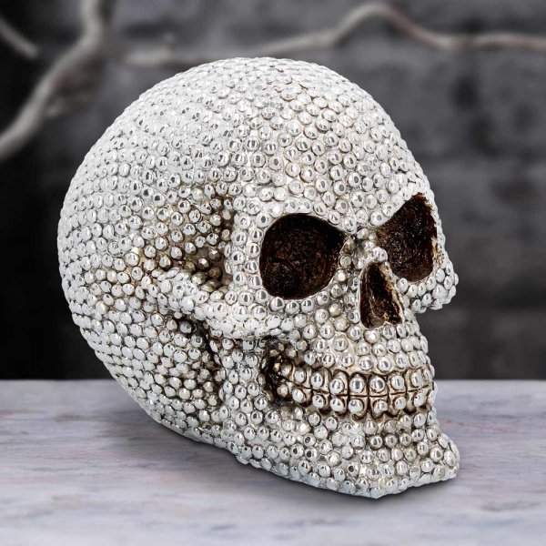 This grinning skull can sit on any mantelpiece. Staring straight ahead and smiling, the skull is covered with a plethora of aurora borealis jewels, broken only by the deep black of the eye sockets and nose. A macabrely mocking reminder of the price of style, this skull is cast in top-quality resin before being carefully hand-painted.,Jewelled Skull,Unique Design,Size 16cm,Gothic Decor,