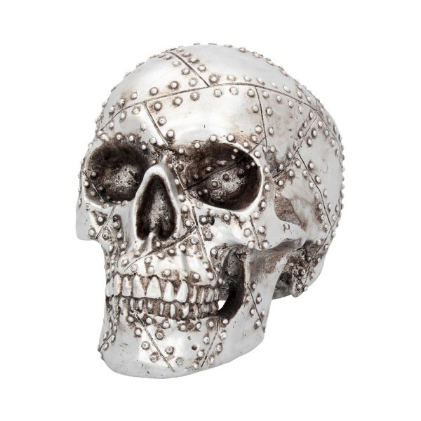 This skull is seemingly made of steel plates, held together with iron rivets. Dark brown rust stains cover the skull, especially in the eye and nose sockets and under the jawbone. Cast in the finest resin before being painstakingly hand-painted, this Gothic statuette is a fantastic addition to any alternative figurine collection.,Rivet skull,Gothic design,Cast in the finest resin,Size 19cm,