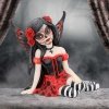 This stunning Fairy, Rosalia, was created by Fantasy brand Nemesis Now. She innocently sits with her striped legs extended to the side, wearing a black corseted dress that has a red skirt detailed with black roses. Red roses add colour to the jet black hair which frames her sugar skull decorated face. This ornament is cast in the finest resin before being lovingly hand-painted, perfect for any fan of Da De Los Muertos.,From the Sugar Skull Fairy collection.,Rosalia has black hair and red accessories.,Cast in the finest resin.,Lovingly hand-painted.,