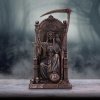 Santa Muerte, the Mexican folk Saint of Death, depicted as a woman in traditional Mexican female garments, she has a skeletal body with a beak protruding from the nasal cavity of the cranium. She is associated with protection, healing, financial wellbeing and assurance of a way to the afterlife. Sitting on a grand throne decorated in symbolic details, she sits tall, scythe in one hand and scales of justice in the other. This piece is cast in the finest resin before being expertly finished in bronze.,Santa Muerte.,Bronze Goddess Figurine.,Cast in the finest resin.,Finished in bronze.,