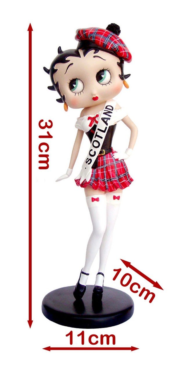Betty Boop is an animated cartoon character created by Max Fleischer, with help from animators including Grim Natwick. She originally appeared in the Talkartoon and Betty Boop film series, which were produced by Fleischer Studios and released by Paramount Pictures. Betty Boop became one of the best known and popular cartoon characters in the world. Official licensed Betty Boop figurine. Highly collectable, hand painted and superbly crafted from Polystone giving incredible detail. Each figurine is stamped with the official Betty Boop Logo and in it’s original box.